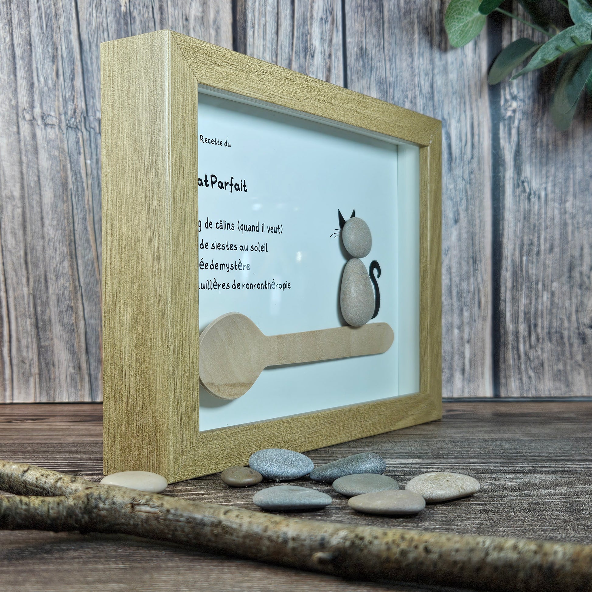 🐱 Avec sa silhouette en galets, ses oreilles pointées et sa queue malicieusement courbée, ce chat observe le monde avec élégance… À ses côtés, une cuillère en bois attend de mélanger les ingrédients du félin parfait : câlins choisis, ronronnements subtils, liberté assumée et charme absolu 💕