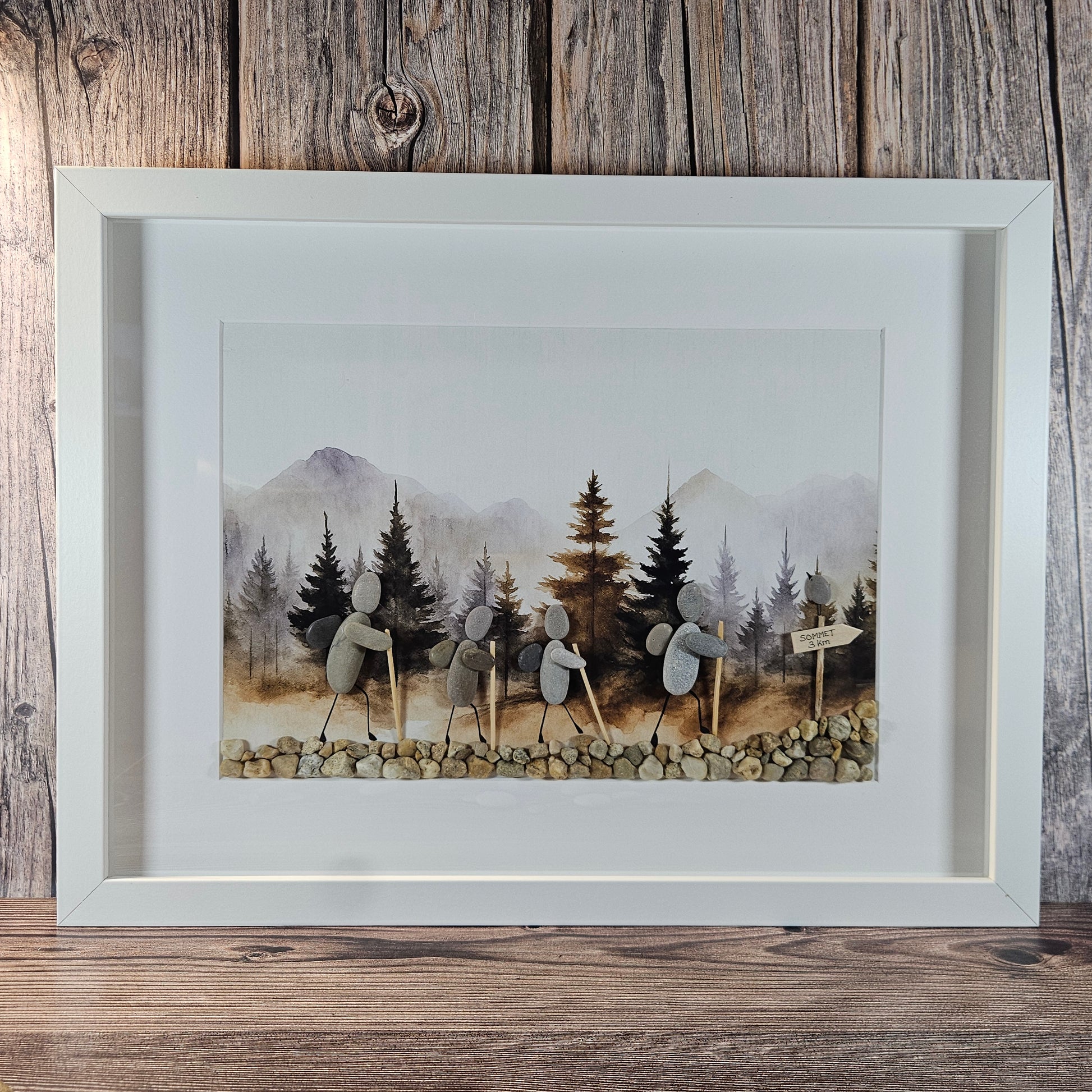 🏔️ Une famille de galets progresse ensemble vers les hauteurs, guidée par la force des montagnes et la sérénité de la nature.